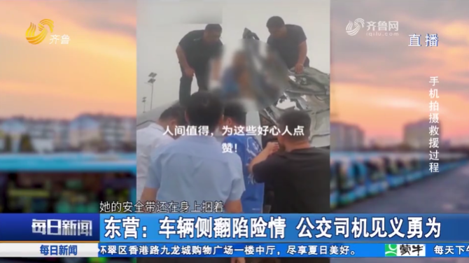 2024年6月6日,東營市公交集團汽車一隊駕駛員蘇文海執行51路公交運行任務,途經廬山路與南一路交匯處時,蘇師傅發現一輛側翻的灑水車內有一名傷者正在揮手求救,由于事發路段處于封閉快速車道,蘇師傅趕忙將公交車??吭诼愤叞踩恢煤笙蜍噧瘸丝透吆埃骸安缓?,有人受傷了,咱們快去救人吧!” 車上的乘客在蘇師傅的帶頭下,一起下車奔向事故車輛,有個女乘客及時撥打了報警求救電話。
