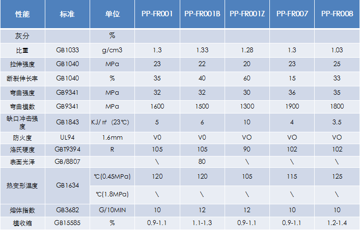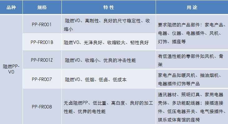 牌號(hào):PP-FR001、PP-FR001B、PP-FR001Z、PP-FR007、PP-FR008