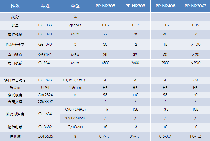牌號(hào):PP-NR306Z、PP-NR308、PP-NR309、PP-NR408
